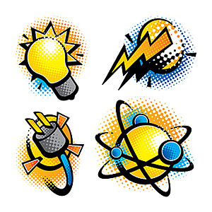 Vector EPS format, exquisite comic style vector icon material, including: light bulbs, plugs, lightning lights elements……