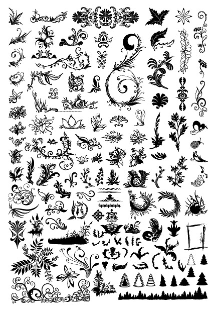 Hundreds of patterns, insects, trees and other vector material