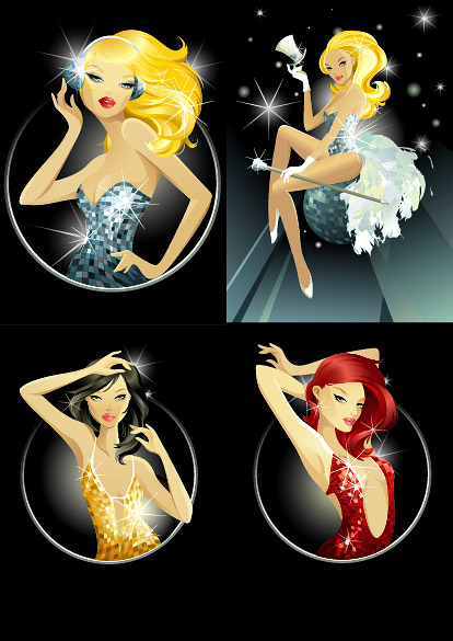 Format, keyword: vector material, vector figures, fashion figures, performers, Stars sparkling, women