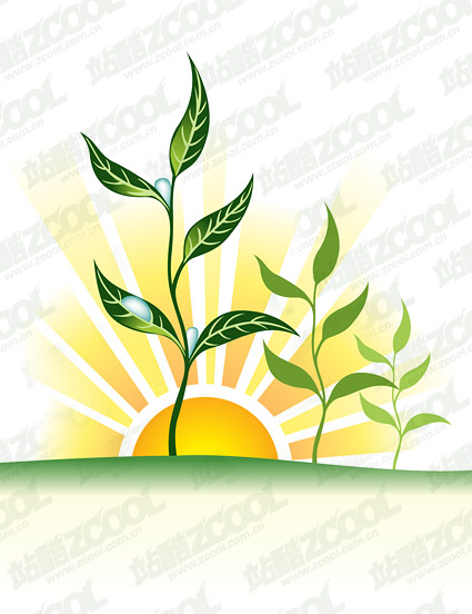 eps format, ai formats, including jpg preview, keyword: sunset, plants, water, sun, tree seedlings, growth, green