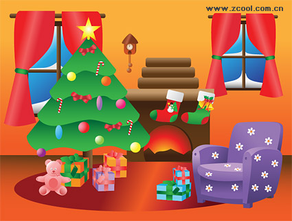 eps format, with jpg preview, keyword: Vector Christmas, New Year, Christmas trees, gifts, teddy bear, sofas, windows, curtains, socks, vector material