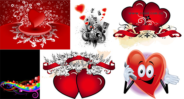 eps format, including jpg preview, keyword: Vector heart-shaped, Valentine's Day heart-shaped cartoon, patterns, speakers, roses, ribbon, banner, rainbow lines, vector material