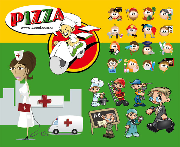 eps format, including jpg preview, keyword: Vector cartoon, characters,nurses, ambulance workers, firemen, cooks, teachers, doctors, white-collar workers, vector material