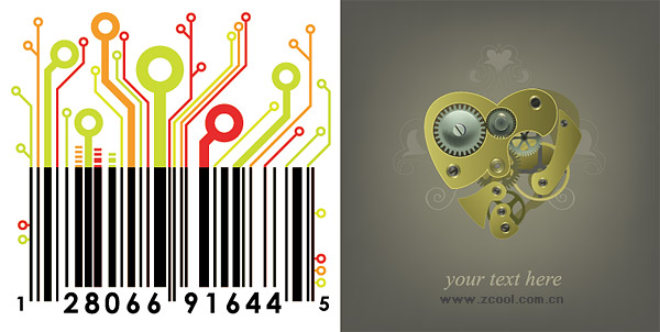 Location: Home > Vector > Other Vector > Mechanical Heart and circuit board material bar code vector