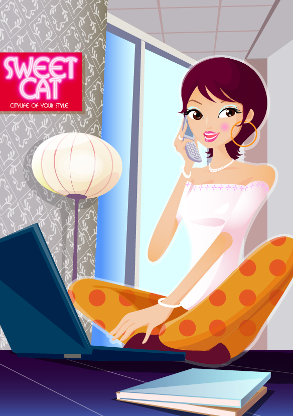 Keyword fashion female girls soho phone laptop notebook wallpaper pattern vector material lamps